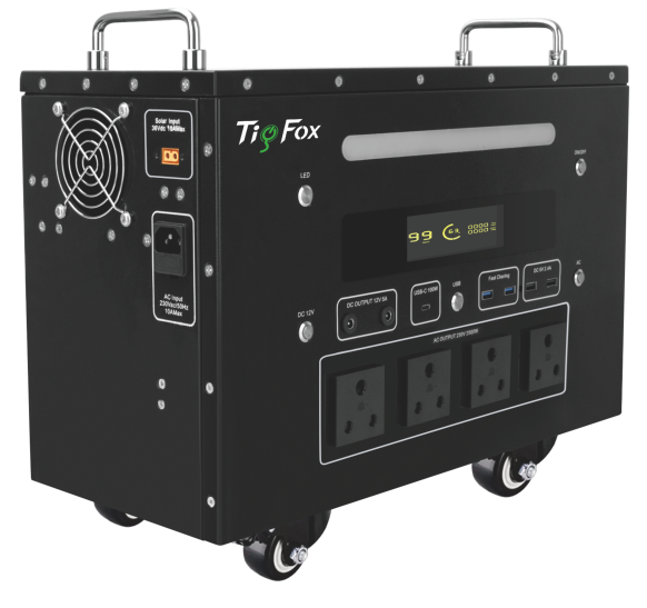 *Battery type: LiFePO4 *Normal voltage:51.2V *Rated power:2500W *Capacity: 2560WH *Current Regulating power: 4200W *AC charging power: 1300W *Max. PV charging power:300W *Max. PV voltage:90Vdc *Max. PV charing current: 15A * Charging ways: AC wall outlet and solar panel. |