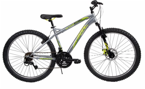 Skip the sidewalk and head straight for the trail with the Huffy Men's Extent 26 in 18-Speed Mountain Bike. It's made with a steel frame and steel suspension to deliver one smooth ride after the next. It's also equipped with a Shimano 18-speed derailleur and front and rear brakes to give you maximum control and comfort.