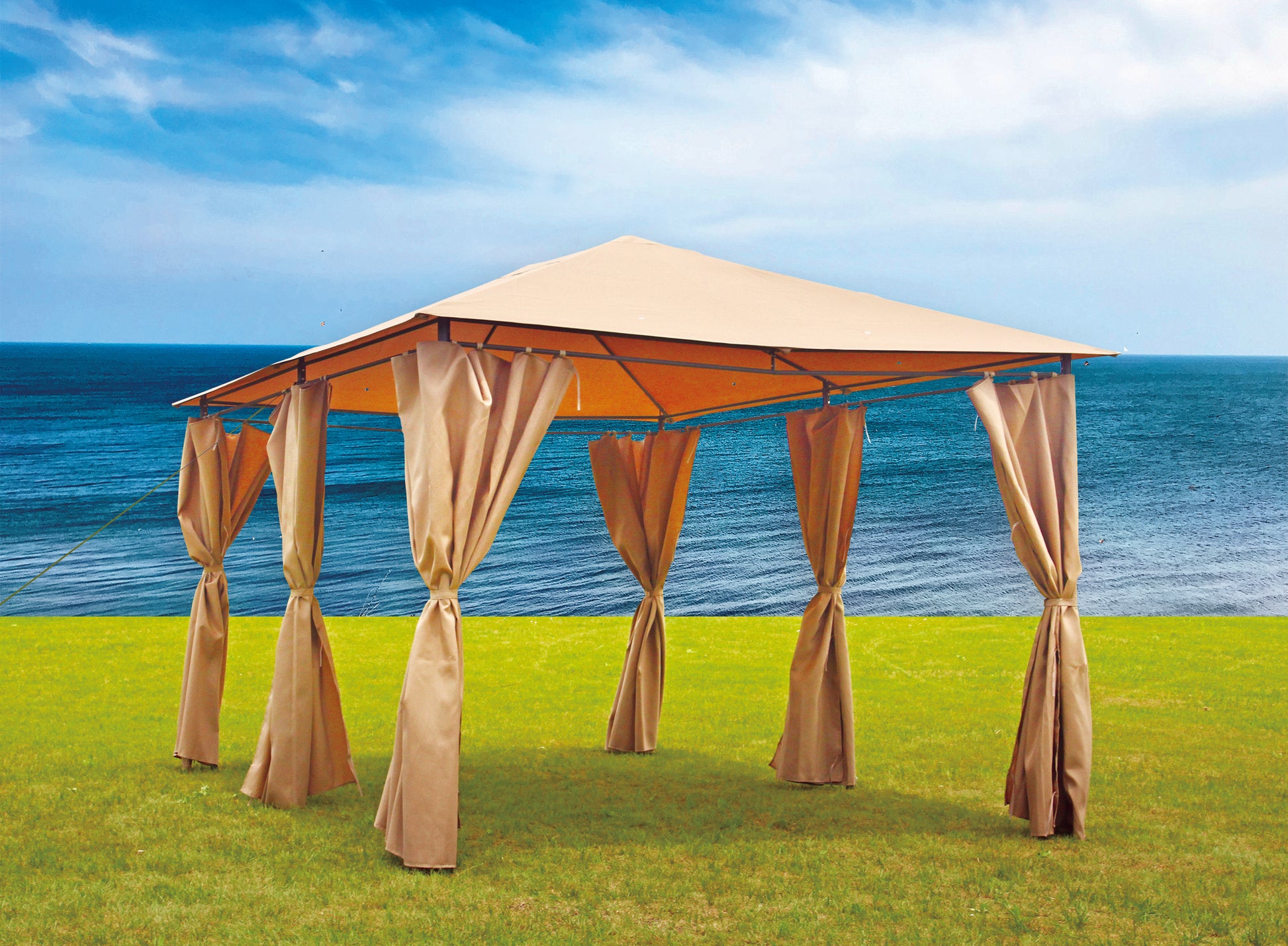 Garden pavillion, 3 x 4m, 2.55m height with side wall curtains, 6 steel legs, polyester top cover & PA coating, new design
