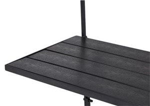 Smart balcony table, which is easily mounted on the side of the balcony with adjustable screws. This balcony table is perfect for small balconies and can be folded when not in use. The tabletop is made of black polywood in wooden look.