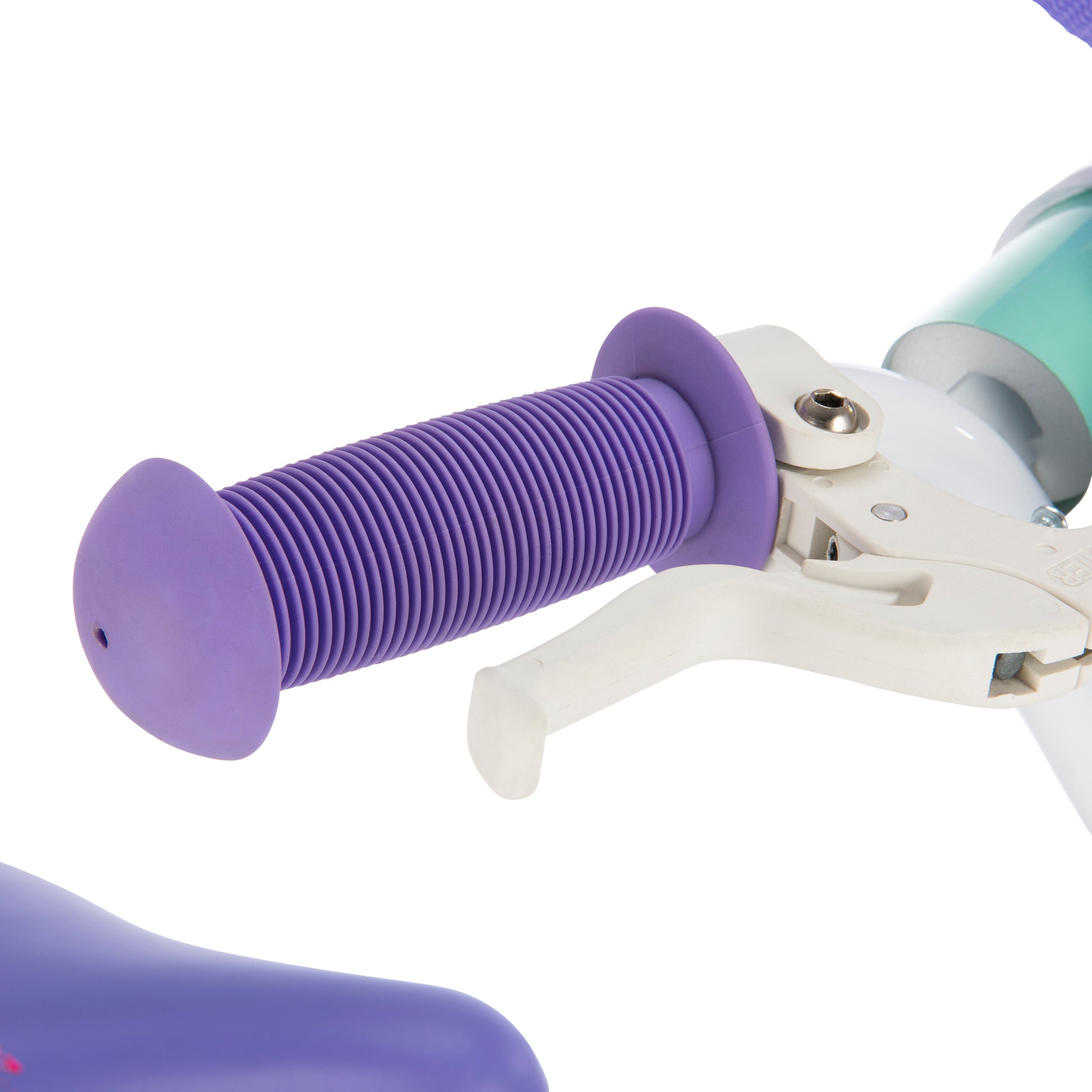 Huffy Glimmer Girls Bike 14" Size for ages 4-6yrs with stabilisers. The Huffy Glimmer girls bike is a favourite for young riders looking to learn to ride in style. Our 14 girls bike with removable stabilisers is great for early riders; ideal for ages 4-6 with a rider height of 105-117cm. With bright, bold colours and fabric front storage pouch on the handlebars, paired with sparkly graphics will make her feel just like a star. The Glimmer bike seat is pleasantly padded and fully decorated with pretty paint strokes; the easy rolling tyre tread is great for family rides in the park; the wheels are supported by lightweight alloy spokes Bundles of Fun! Quick & Easy Assembly. The Huffy Glimmer range of bikes all come in our now famous Quick Connect format, making kids bike assembly fast and easy - follow these 4 simple steps to get riding in just minutes; insert fork and handlebar - fold pedals down until they click in place - insert seat and adjust, ride!